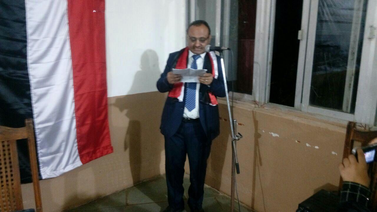 مضيفا في كلمته بأن الثوار اليمنيون سطروا أروع التضحيات لمقاومة الغزاة المستعمرين، و استطاعوا -بعد نضال دام طويلاً قدم خلاله الكثير من الشهداء - إجبار الاستعمار البريطاني الرحيل من الجزء الجنوبي من اليمن الحبيب، حتى تحقق الاستقلال الوطني عام 1967.