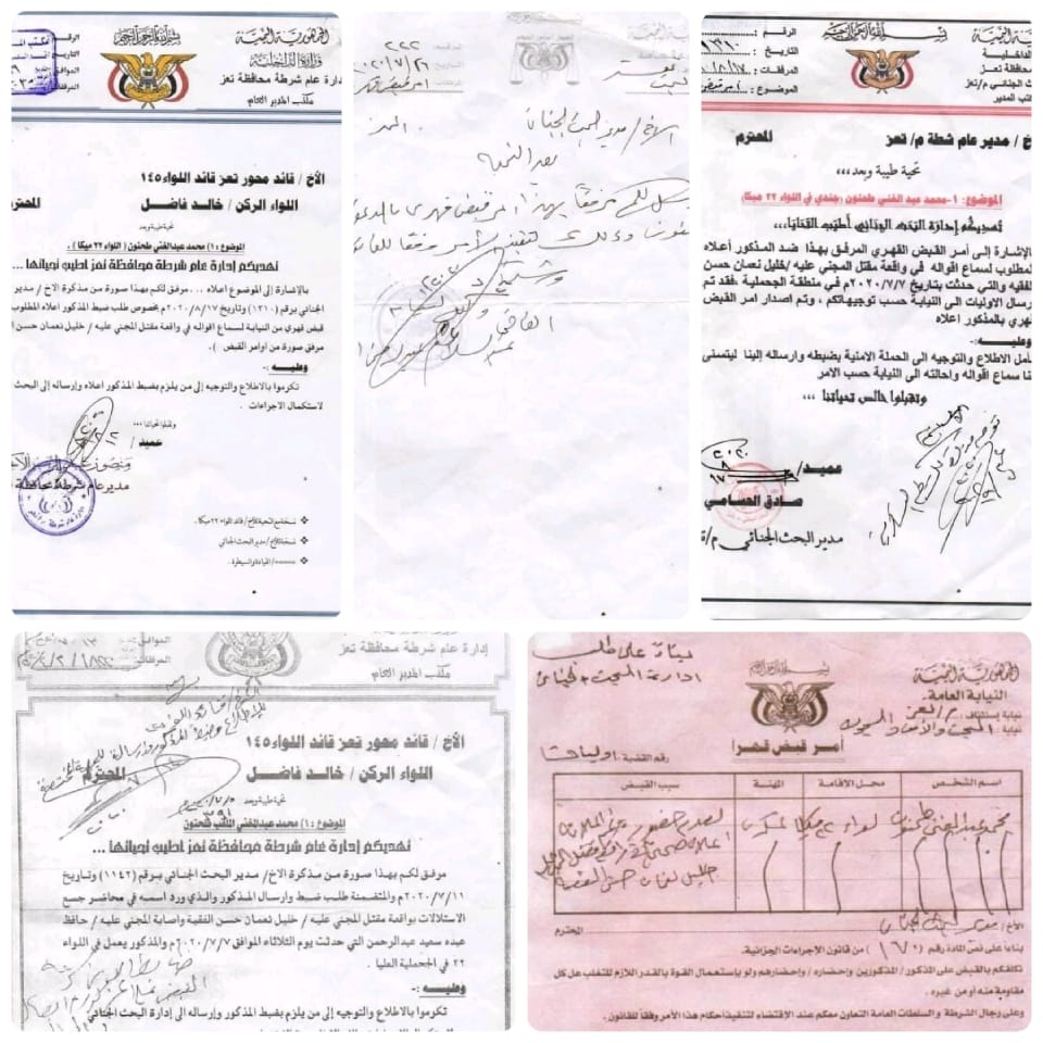 الا أن وثائق رسمية حصل عليها "الرصيف برس" ، كشفت بان المدعو "طحنون" واسمه الحقيقي محمد عبدالغني ، مطلوب أمنيا ومتهم بعدة قضايا منها جريمة قتل المواطن خليل الفقية والتي وقعت في شهر يوليو 2020م بمنطقة الحجملية.