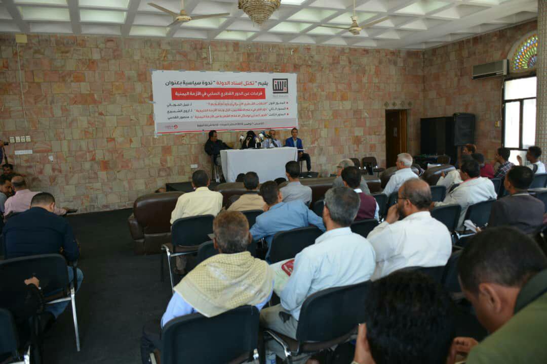 الدور القطري السلبي في الازمة اليمنية في ندوة سياسية لتكتل إسناد الدولة بتعز