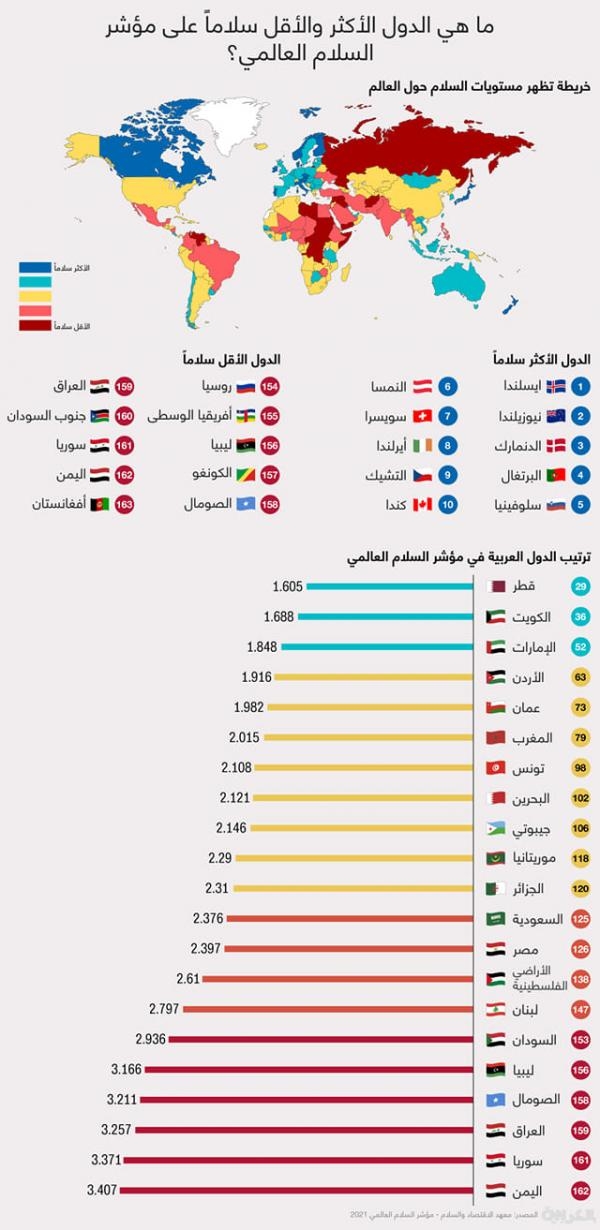 اليمن ثاني أسوأ دولة في مؤشر السلام العالمي والأولى في الشرق الأوسط