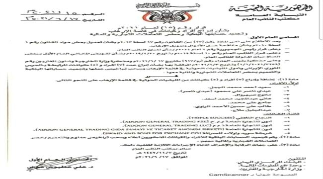 جمدت حكومة الشرعية حسابات كافة الاشخاص والكيانات المشمولين بالعقوب ...