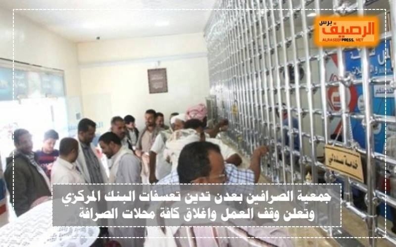جمعية الصرافين بعدن تدين تعسفات البنك المركزي وتعلن وقف العمل واغلاق كافة محلات