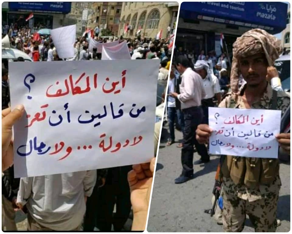 "أين المَكَالِف " لافتة رفعها أحد عناصر الإخوان بزي الجيش في المسي ...