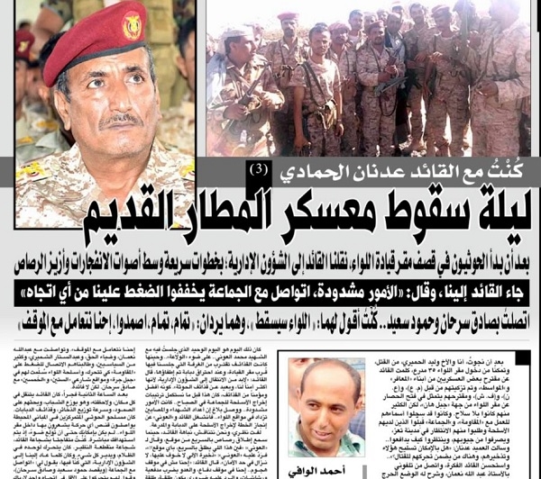 - نَسَّقتُ لأوَّل لقاءٍ تمَّ بين القائد الحمادي والأستاذ عبد الله نعمان، واتفقا على تشكيل مجلس عسك ...