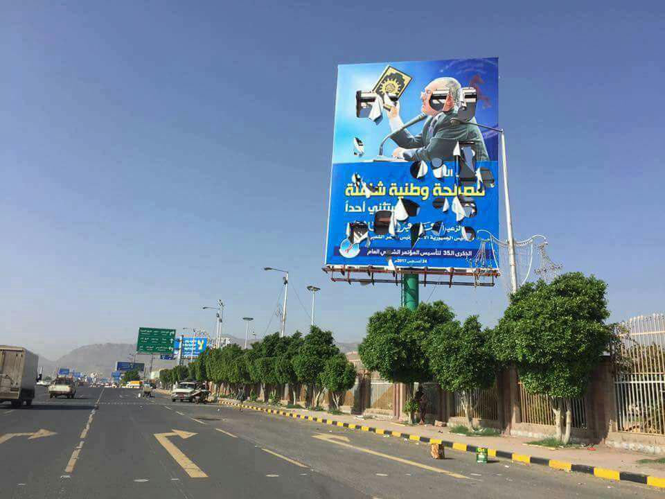 وكانت صور للمخلوع صالح مع الرئيس هادي رفعت في ميدان السعبين تم ازالتها في وقت سابق تحت ضغط وتهديد حوثي.
