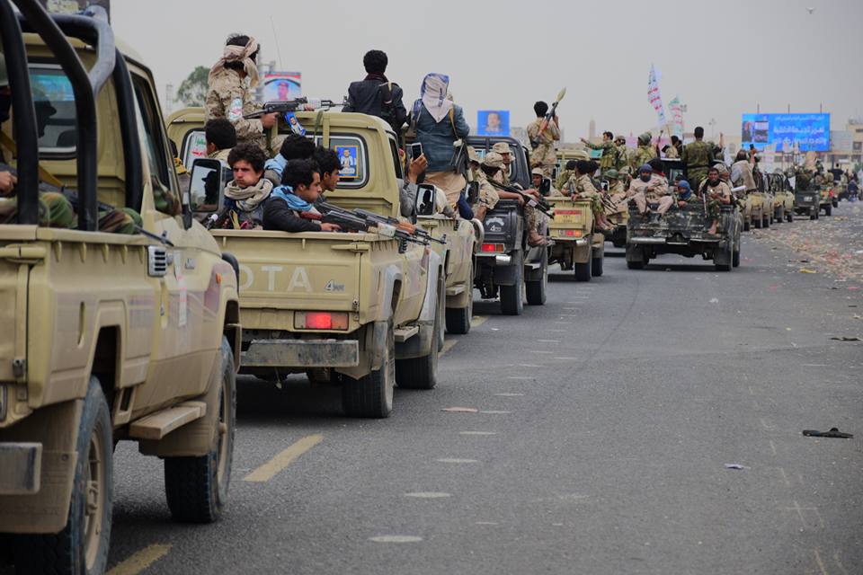 واستعرضت الجماعة وسط ميدان السبعين بنحو 130 طقما عسكريا قادمة من اماكن الاعتصام التي اقامتها في مداخل صنعاء بالتزامن مع فعالية انصار المخلوع.