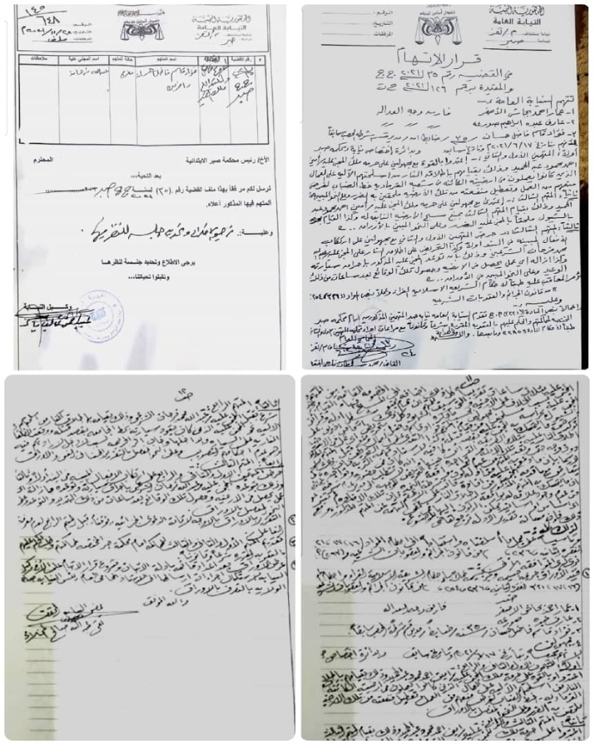 وأشارت الوثائق الى اتهام رئيس نيابة استئناف تعز للمدعو فؤاد فاضل واثنين أخرين من اتباعه ، بالسطو المسلح على أرضية تابعة لمحافظ تعز السابق الدكتور أمين محمود.