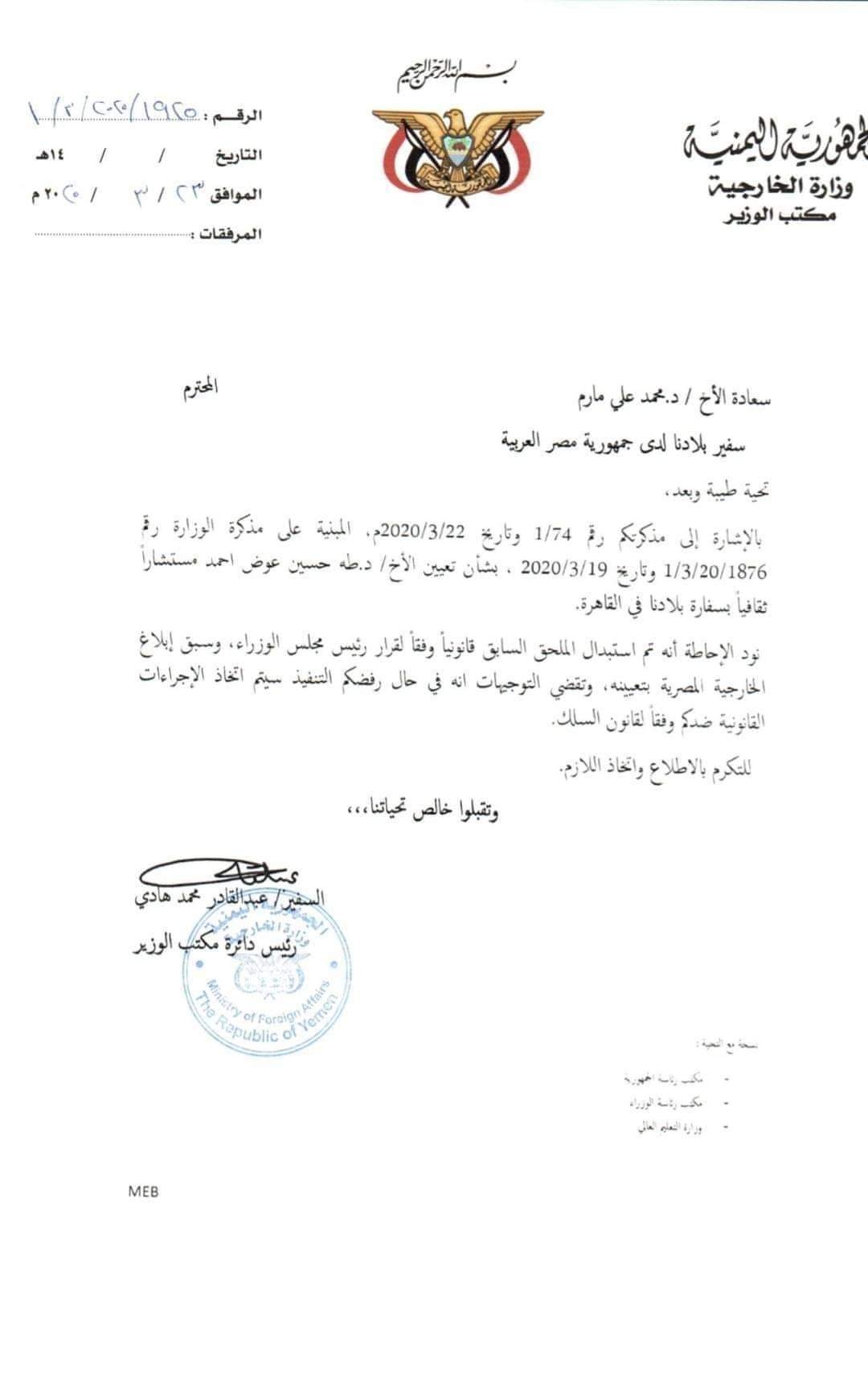 صحفي يكشف فساد الشرعية بتعيين شقيق مسؤول التشريفات برئاسة الوزراء بمنصب دبلوماسي- وثيقة