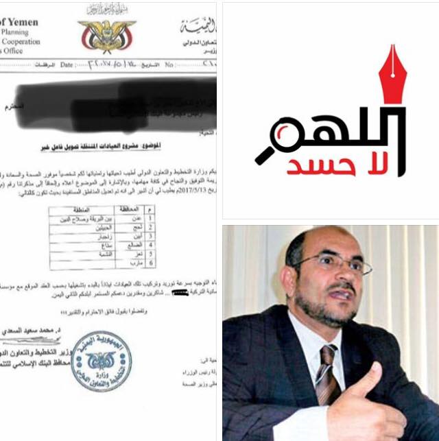 افشل وزير التخطيط بالحكومة الشرعية والقيادي في حزب الاصلاح محمد السعدي مشروعا كان سيمنح اليمن 6 عيادات متنقلة.