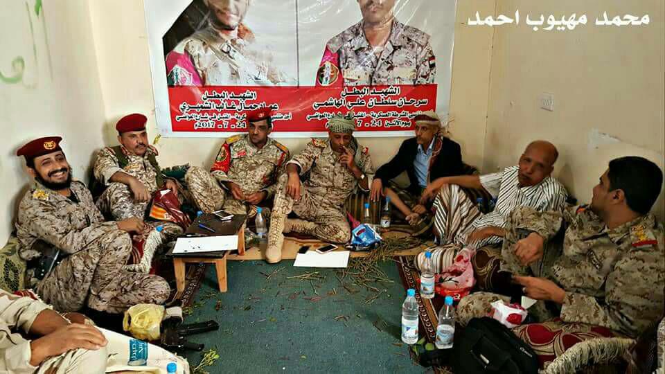 وبحسب ما نشره اعلام المحور عن الاجتماع ، فقد ناقش الاجتماع الاحداث الذي وقعت أمام بوابة الشرطة العسكرية ظهر يوم الثلاثاء الماضي والتي تمثلت في اجتماع قائد المحور لمبنى الشرطة العسكرية وكذا استهداف وكيل المحافظة عارف جامل.