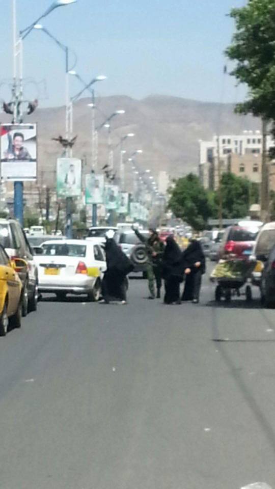 بالفيديو والصور : مسلحو جماعة الحوثي وصالح يعتدون على أمهات المختطفين ويطاردونهن في شوارع صنعاء