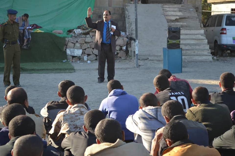 حيث نظمت إدارة التوجيه المعنوي والعلاقات العامة بأمن تعز اليوم ، محاضرة للأفراد المستجدين في المركز التدريبي للشرطة أقامها احد عناصر حزب الاصلاح.
