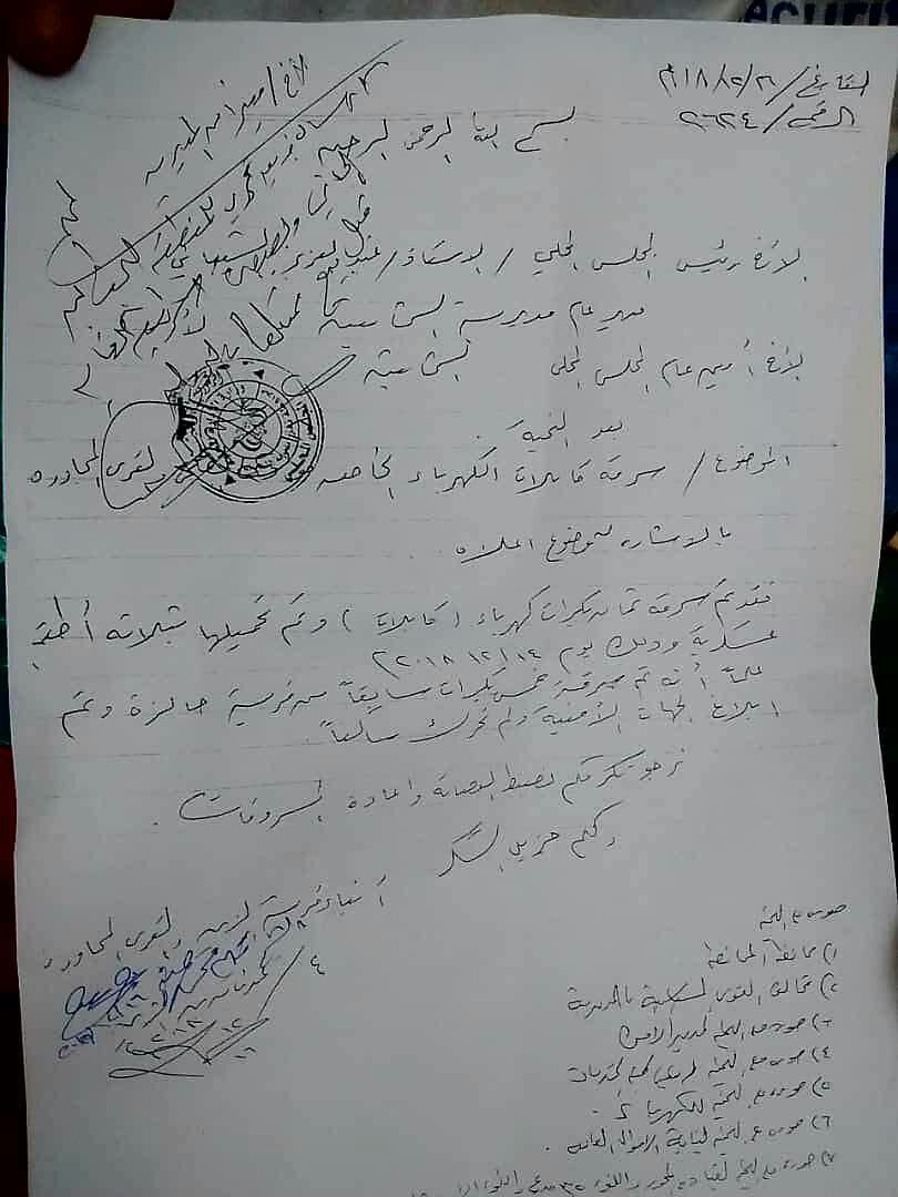 حيث أفادت المصادر بتعرض احد المحاولات الكهربائية في منطقة صالة للنهب يوم الثلاثاء الماضي.