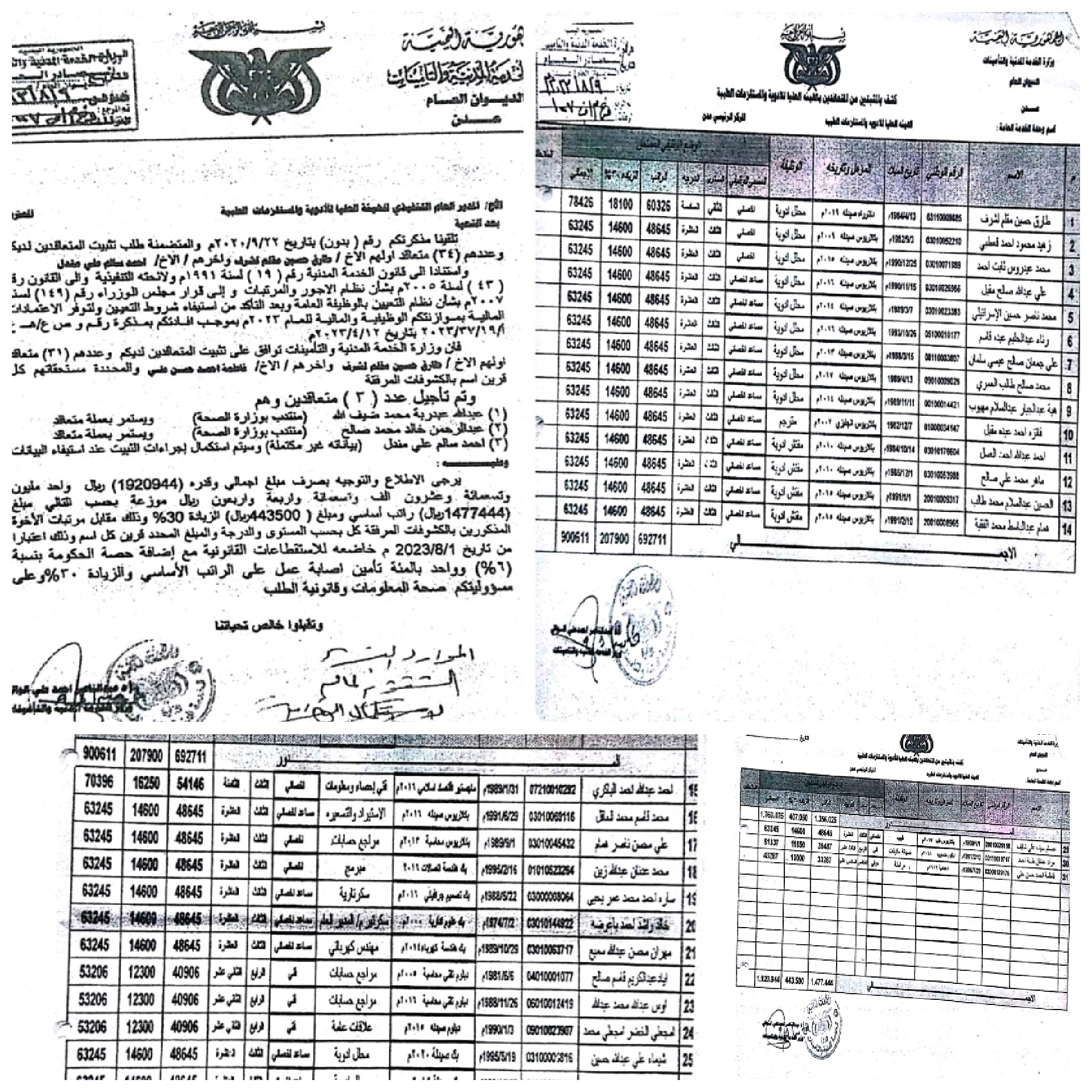 وتشير الوثائق الى اصدار وزير الخدمة المدنية عبدالناصر الوالي في أغسطس الماضي بتثبيت عدد (34) متعاقداً لدى الهيئة العليا للأدوية والمستلزمات الطبية وأصدرت لهم فتوى توظيف دون الرجوع للهيكل الإداري المنظم للوزارة.