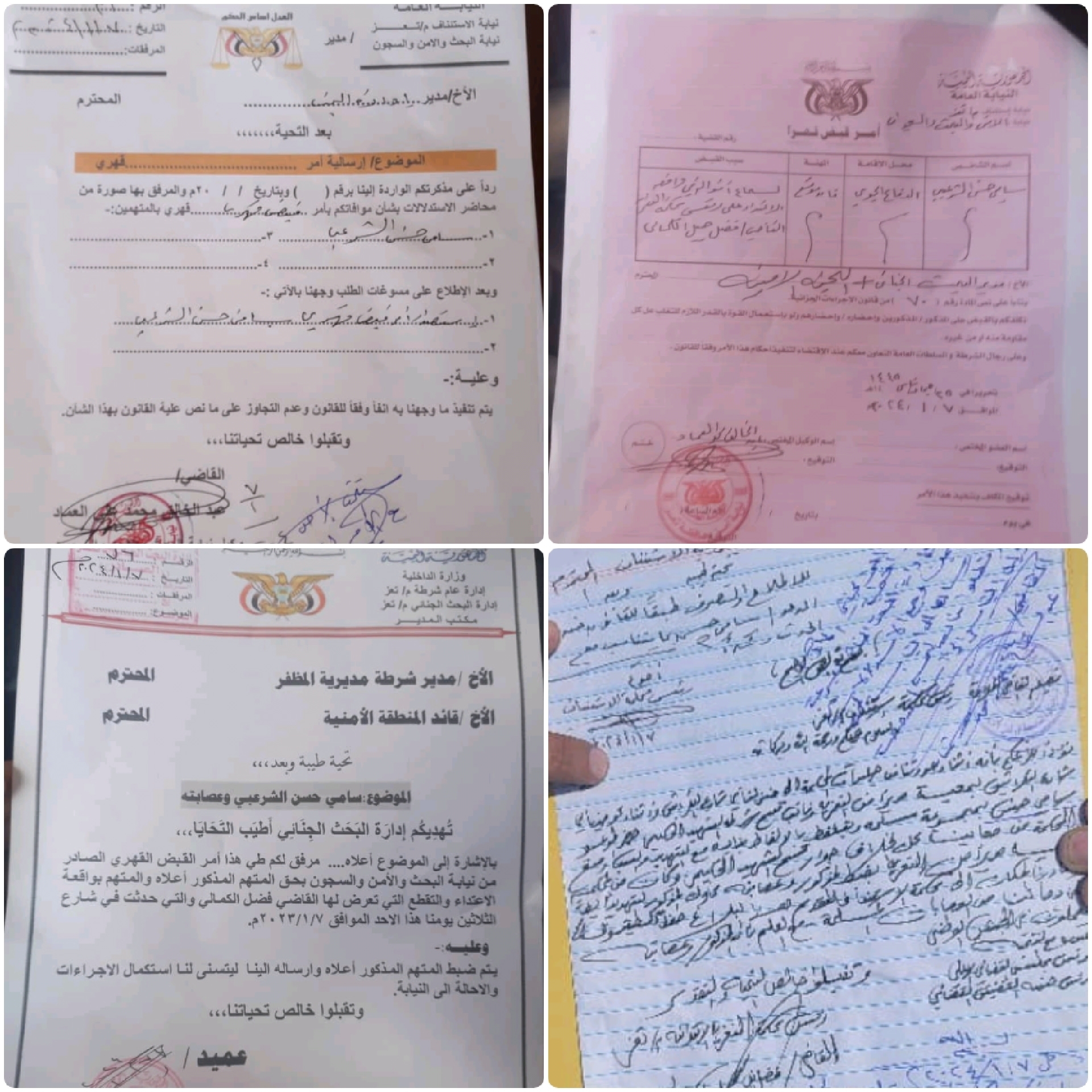 كما وجه مدير البحث الجنائي صادق الحسامي مذكرة لمدير شرطة تعز وقائد المنطقة الأمنية أوامر القبض القهرية الصادرة من نيابة البحث والأمن والسجون ضبط المذكورين لتقطعهم واعتدائهم على القاضي الكمالي.