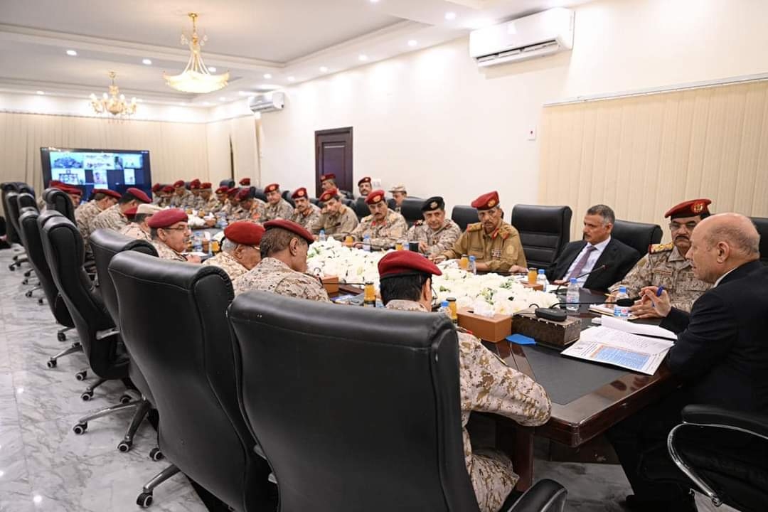 عقد رئيس المجلس الرئاسي القائد الاعلى للقوات المسلحة الدكتور رشاد محمد العليمي اجتماعا موسعا بقيادة وزارة الدفاع و رئاسة هيئة الأركان العامة، ورؤساء الهيئات، وقادة القوات والمناطق والمحاور العسكرية، وهيئة العمليات المشتركة.