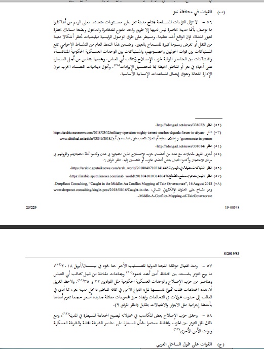 ملاحظة : تم الحصول على المعلومات من خلال مقابلات اجراها الفريق داخل اليمن و خارج البلاد اثناء فترة التقرير.