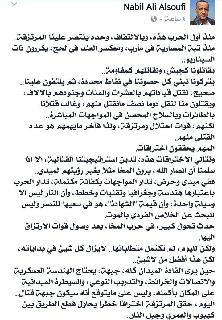 صحفي مقرب من المخلوع يكشف الالتفاف الخطير للجيش بالمخا ويتساءل : الى متى نتلقى الهزائم ؟
