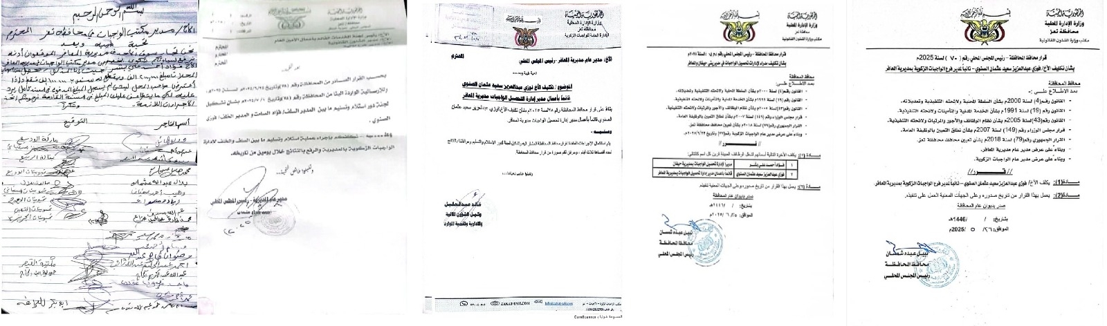 واظهرت وثيقة حصل عليها "الرصيف برس" توجيهاً من وكيل المحافظة للشئون المالية والإدارية الى مدير عام مديرية المعافر بتشكيل لجنة استلام وتسليم بين الصامت والصنوي.