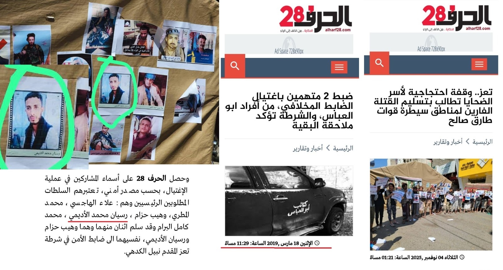 وهو ما يكشف عن فضيحة مدوية لمحاولة جماعة الإخوان تلفيق مزاعم بوجود مطلوبين أمنيين بجرائم قتل تحت حماية قوات المقاومة في الساحل الغربي، وتهدف الجماعة خلط الأوراق بمظلومية ضحايا اسر لقتله هربتهم الجماعة بعد القبض عليهم، بغرض التشويه لمن تعتبرهم خصومها كطارق وبهدف ضياع حق مظلومية مطالبة اسر الضحايا العادلة في "ساحة العدالة" بالقبض على القتلة من المتهمين من افراد محورها العسكري في المدينة.