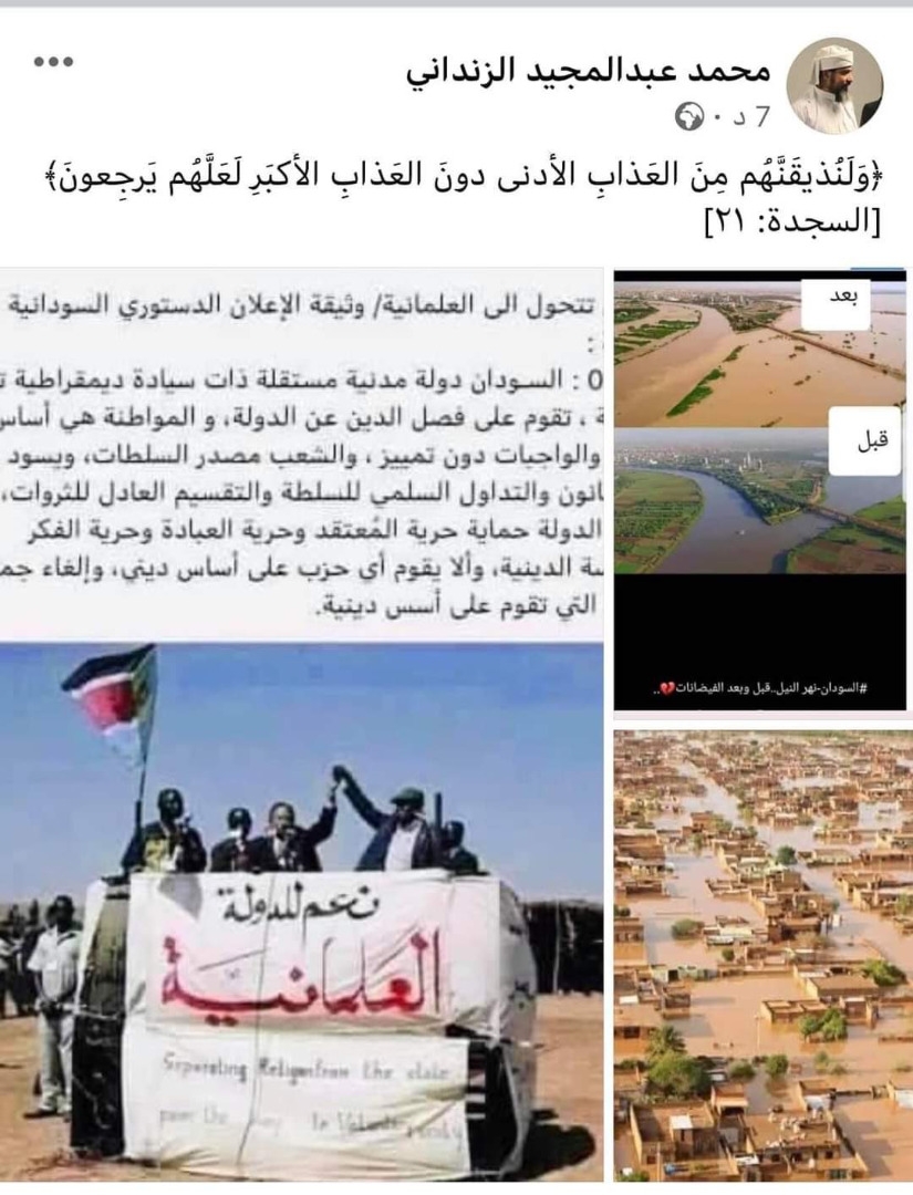 الزنداني الابن : فيضانات السودان عقاب من الله على اسقاط الاخوان - صورة