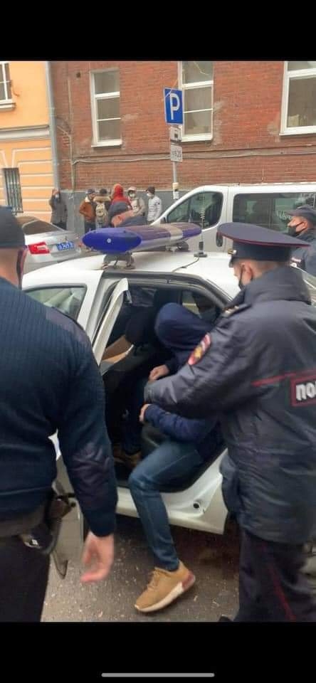 بعد قرابة الشهر من الاعتصام أمام السفارة اليمنية في موسكو قوات الشرطة الروسي تعتقل صباح اليوم طالبان يمنيان .