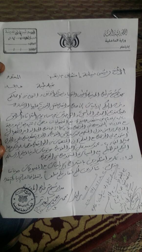 بالوثائق : احالة قضية مقتل الاستاذة هيام للنيابة العامة بتعز