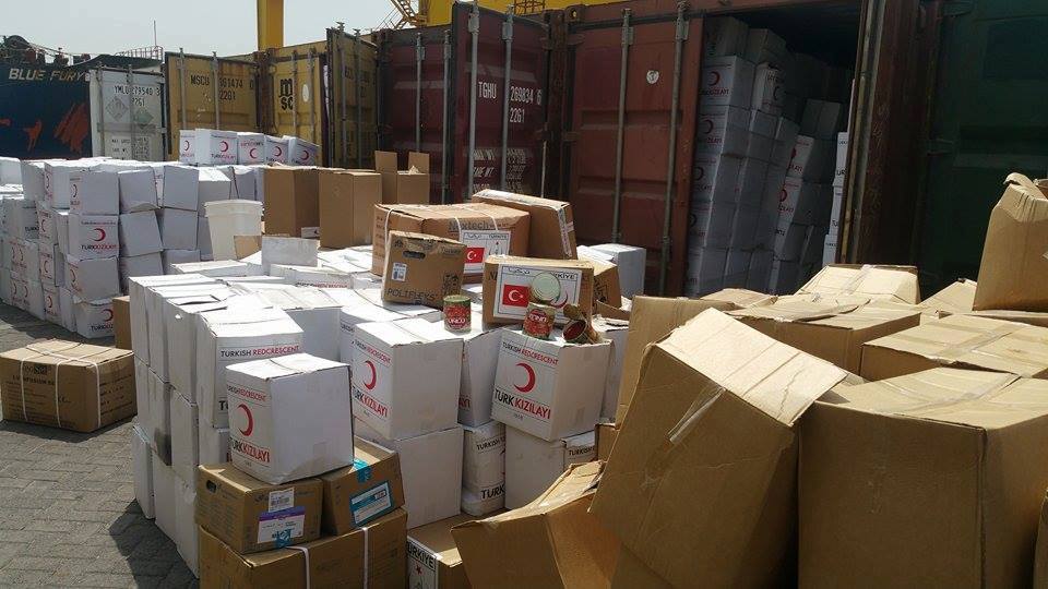 وقال بأن الباخرة الإغاثية التركية احتوت على مواد إغاثية "سلل غذائية" ، لافتا الى أن احد الأصناف (معجون طماطم) تبين قرب فترة انتهاء صلاحيته وتبقى له شهرين فقط مع ظهور اعراض انتفاخ على العبوات بسبب سوء التخزين.