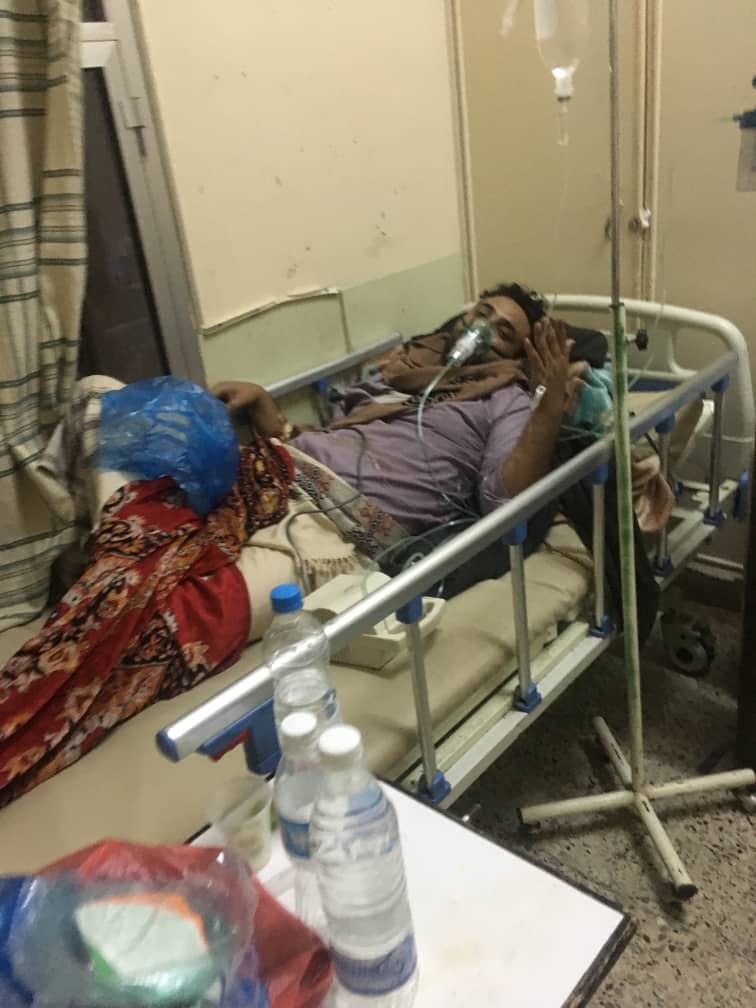 ومنع وكيل الضحايا محمد عبدالحكيم شمسان حضور الجلسة واقتياد من غرفة العناية المركزة بمستشفى خليفة العام بالتربة الى سجن أمن المديرية.