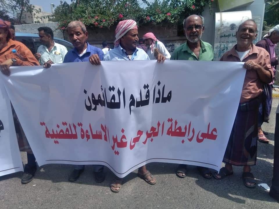 واستنكرت الأطباء في وقفتهم الاعتداء الذي تعرض له الدكتور عبدالرحيم السامعي رئيس الهيئة، من قبل أفراد تابعين لما يسمى “رابطة الجرحى” التابعة لمحور تعز العسكري.