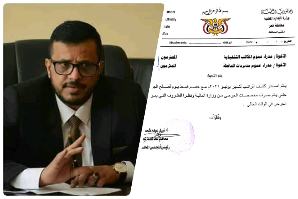 فجرت توجيهات لوكيل محافظة تعز عارف جامل بوقف صرف مرتبات ال ...