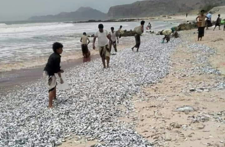 افاد سكان محليون بمحافظة حضرموت ، بنفوق كميات كبيرة من أسماك العيد ( السردين ) ، في سواحل ...