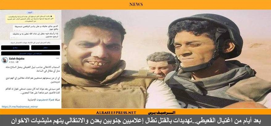 كشف إعلاميون جنوبيين عن تلقيهم تهديدات بالقتل بعد أيام من حادثة اغتيال المصور نبيل القعيطي في عدن. ...