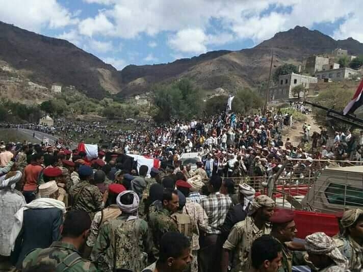 شيع عشرات الآلاف من أبناء تعز اليوم جثمان الشهيد عميد ركن عدنان الحمادي قائد اللواء 35 مدرع إلى مث ...