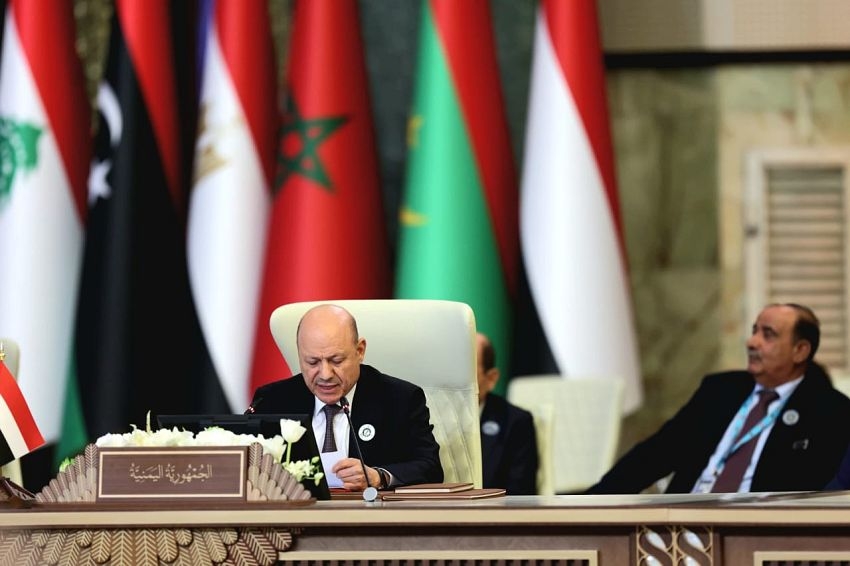 تجنب رئيس مجلس القيادة الرئاسي رشاد العليمي الإشارة الى الدعم الإيراني للمليشيا الحوثية الإرهابية ...