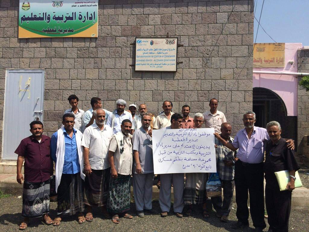 نفذ موظفو ادارة التربية والتعليم بمديرية قعطبة محافظة الضالع وقفة احتجاجية احتجاجا على الاعت ...