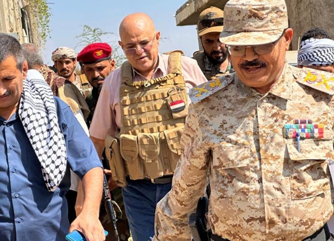 زار محافظ تعز رئيس اللجنة الأمنية نبيل شمسان، اليوم، ومعه وكيل المحافظة لشؤون الدفاع والام ...