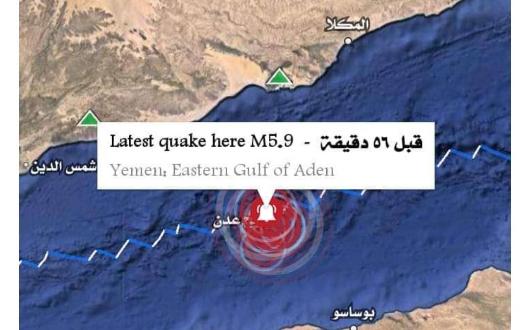 ضرب زلزال سواحل خليج عدن، اليوم السبت، وبلغت قوت اعلاها 5.9 درجة. وقالت مصادر إن 10 هزات ...