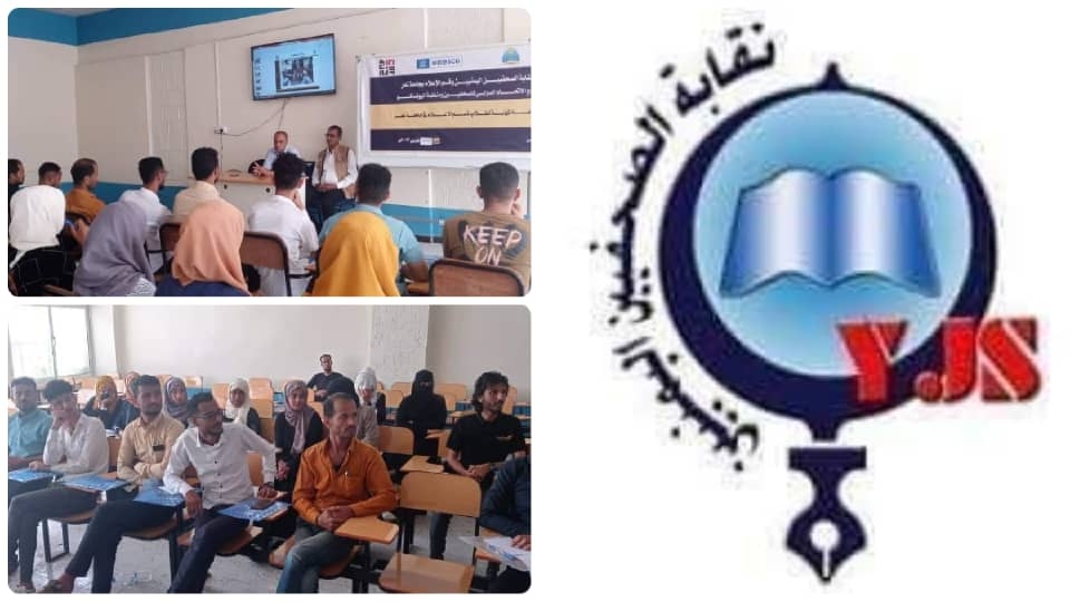 نظمت نقابة الصحفيين اليمنيين وقسم الإعلام بجامعة تعز ، دورات السلامة المهنية لطلاب الإعلام في الجا ...
