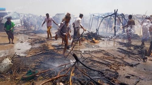 يعيش نازحو مخيم الجشة بمدينة الخوخة جنوب الحديدة في العراء. بعد أن التهمت النيران خيامهم التي كانت ...