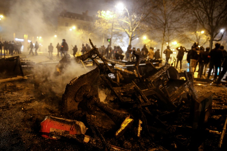 أطلقت شرطة مكافحة الشغب في فرنسا الغاز المسيل للدموع وقنابل الصوت ومدافع المياه يوم ال ...