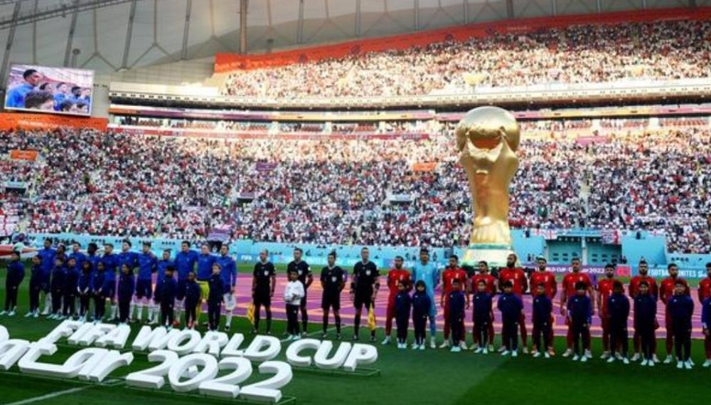 رفض لاعبو المنتخب الإيراني لكرة القدم ترديد النشيد الوطني الإيراني في مباراتهم الأولى ضد المنتخب ا ...