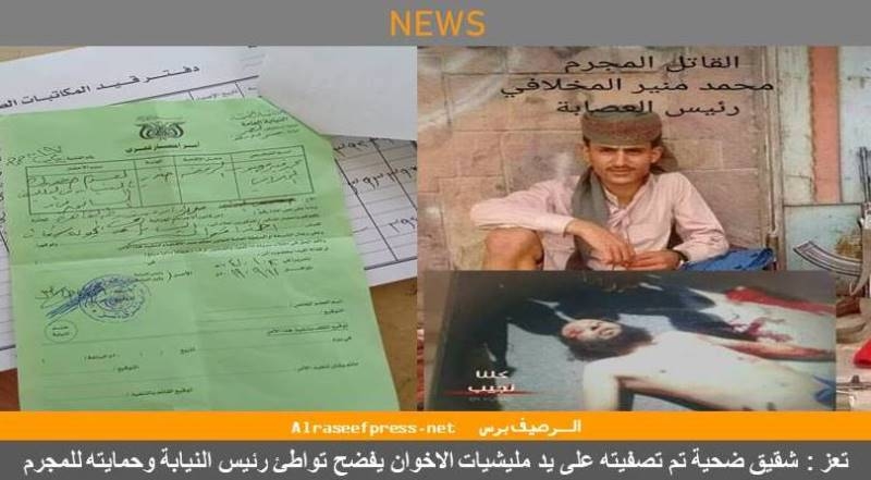 كشف شقيق ضحية تم تصفيته على يد مليشيات الاخوان في مدينة تعز عن تواطئ رئيس النيابة مع المجرم. &nbs ...